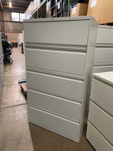 - 36″ wide, 5-drawer lateral filing cabinet