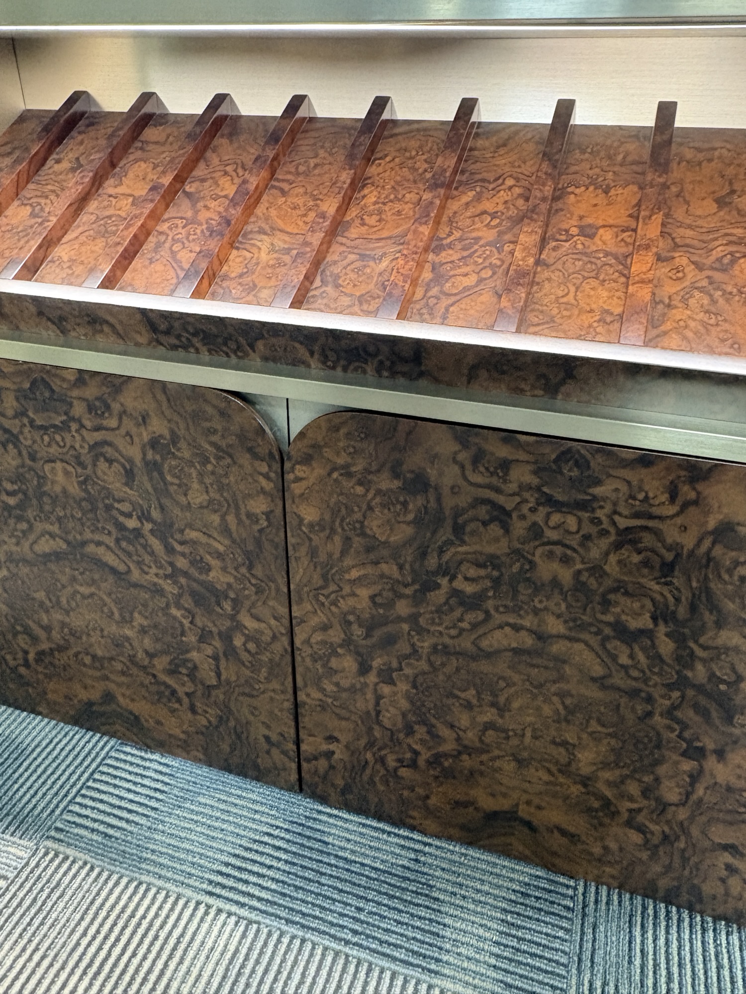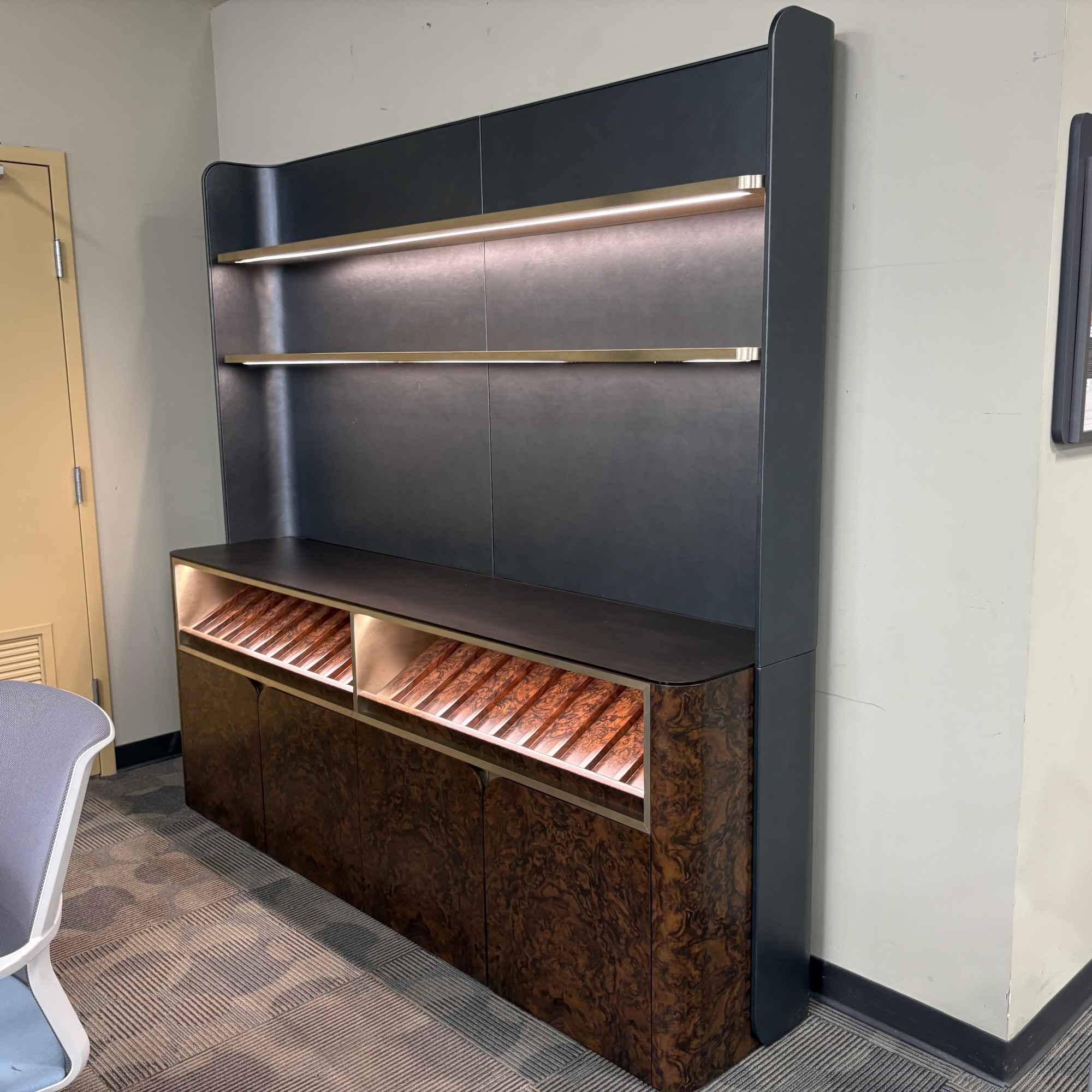Elevate your space with this stylish and functional Decca Wine Credenza with attached shelf. Designed for both storage and display, this piece is perfect for bars, restaurants, hotel lobbies, office lounges, breakrooms, or home entertaining areas.