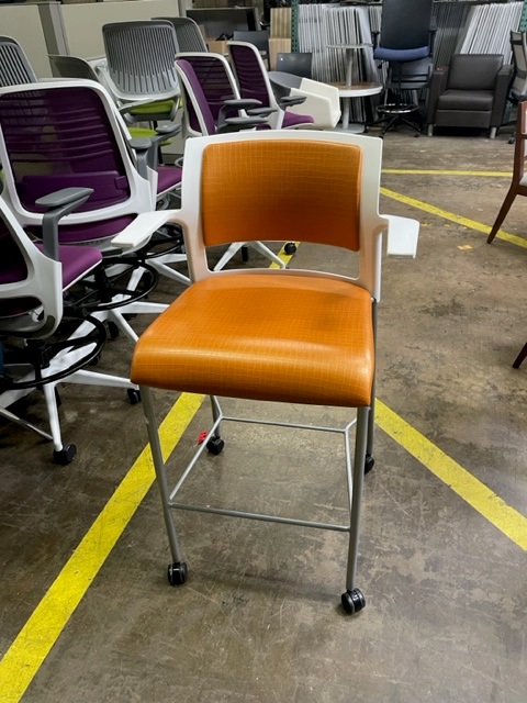 Add movement and personality to your space with this Used Steelcase Mobile Move Stool with Arms in Orange and White. Designed at bar-stool height, this dynamic seating option supports active sitting and is ideal for collaboration zones, high-top tables, training areas, or creative workspaces.